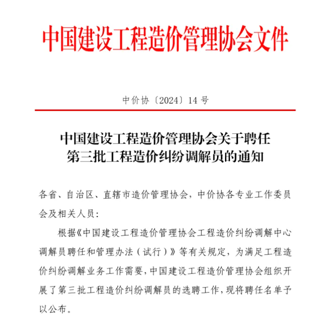 再次获聘中价协造价纠纷调解员,华体会平台-华体会(中国) 已有三位!