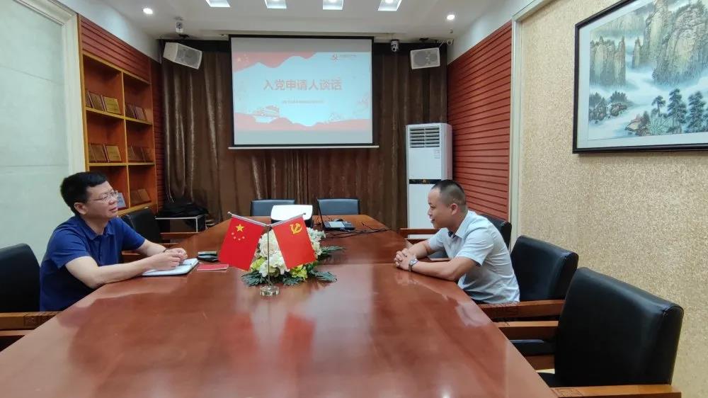 我司党支部组织开展了第一期党员与入党申请人谈话会议。颜书记与7名入党申请人逐一进行谈话。